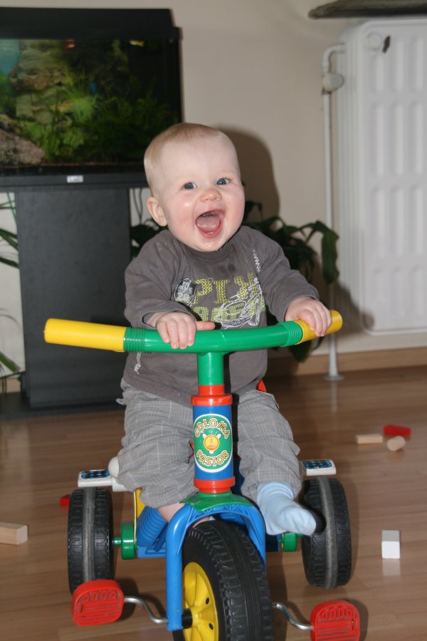 Het liefste wat ik doe, is spelen met het speelgoed van mijn grote broer: brood verkopen in de winkel, aan de toog hangen, vanalles in de oven steken en fietsen. Terwijl ik op de fiets zit, maak ik het geluid van een auto broembroembroem. Dit met een natte t-shirt tot gevolg.